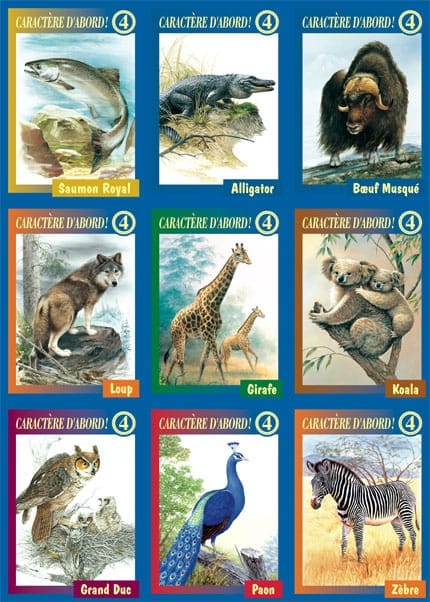 Collections de 9 cartes illustrant chaque animal ainsi que la qualité qui lui est rattachée. Collection de cartes supplémentaires